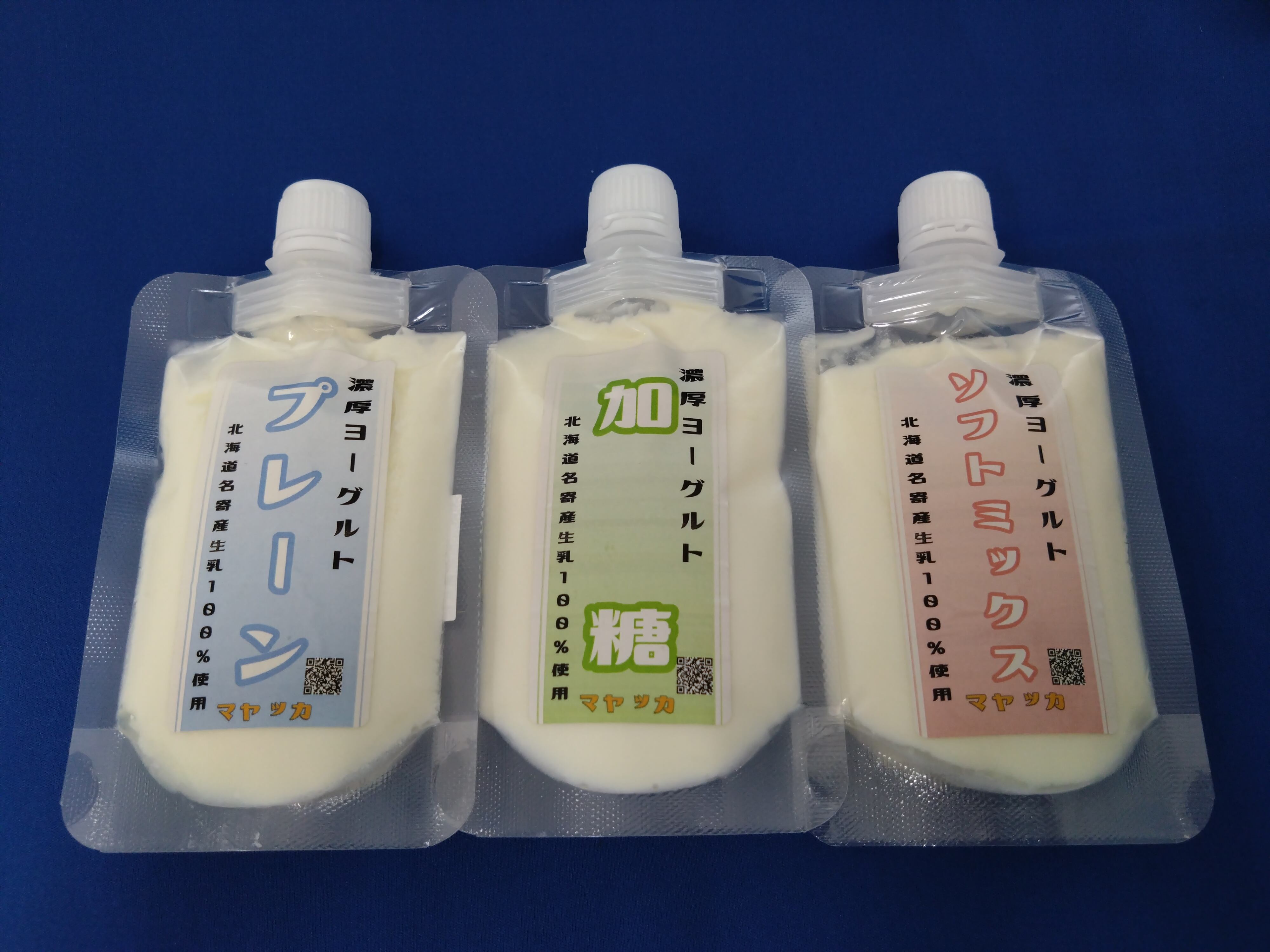 北海道名寄産の新鮮な牛乳を使ってできたヨーグルトのセットです。ほんのりチーズの味が隠れている滑らかな食感の『プレーン』、砂糖を加えてほんのり甘い『加糖』、ソフトミックスを加えてバニラ風味がする『ソフトミックス』の3種類が一度に味わえます!